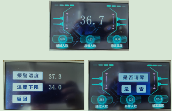 7寸彩色触屏显示通过人数,异常人数,检测温度